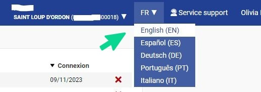 You can change the language of your user account by clicking on the blue banner in the space dedicated to the choice of language.